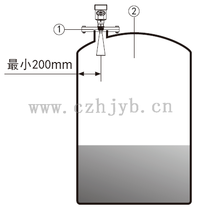 Ø 儀表不能安裝在拱形或圓形罐頂中間。除了會產(chǎn)生間接回波還會受到多次回波的影響。多次回波可能比真正回波的信號閥值還大,因為通過頂部可集中多個回波。所以不能安裝在中心位置。