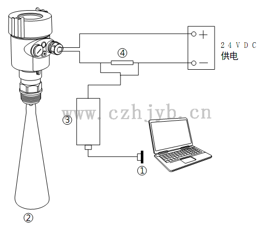 (4~20) mA/HART(四線制) 供電電源和電流信號分開,各自分別使用一根兩芯屏蔽電纜線。具體供電電壓范圍參見技術數(shù)據(jù)。